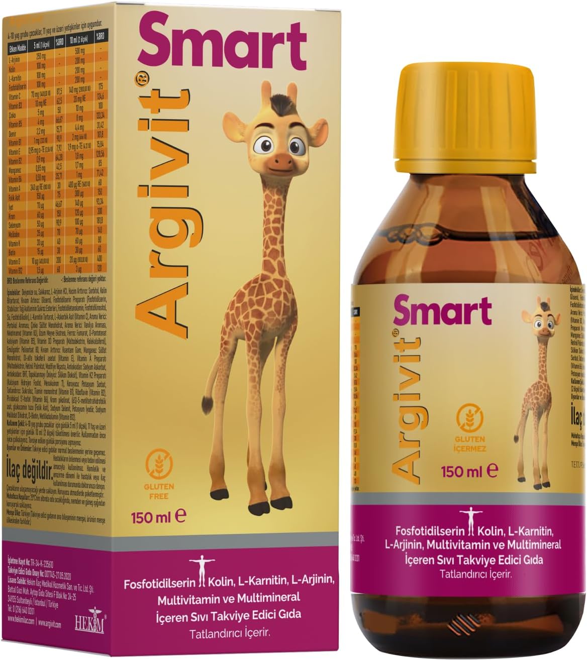 Argivit Smart Phosphotidylserine, Choline, L Carnitine, L Arginine, Multivitamin, Multimineral Syrup 150 ml Orange and Vanilla Aromal